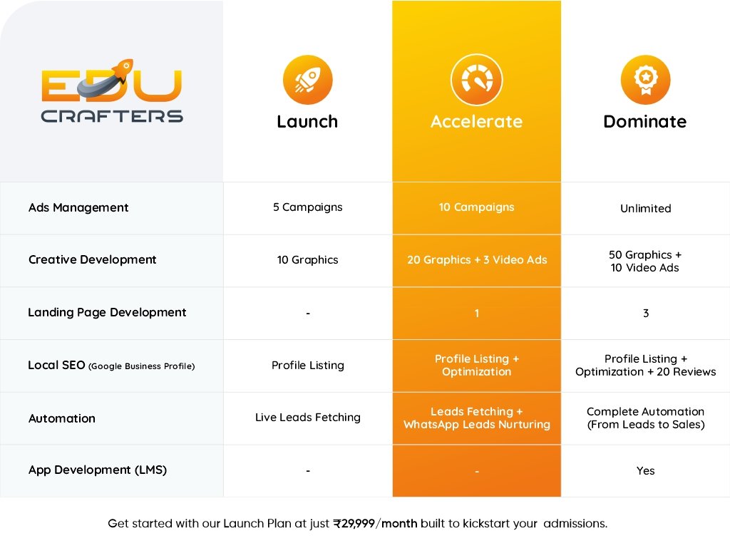 We use highly targeted Google & Meta Ads to reach only serious students. Plus, our CRM system helps filter and nurture leads for higher conversions.